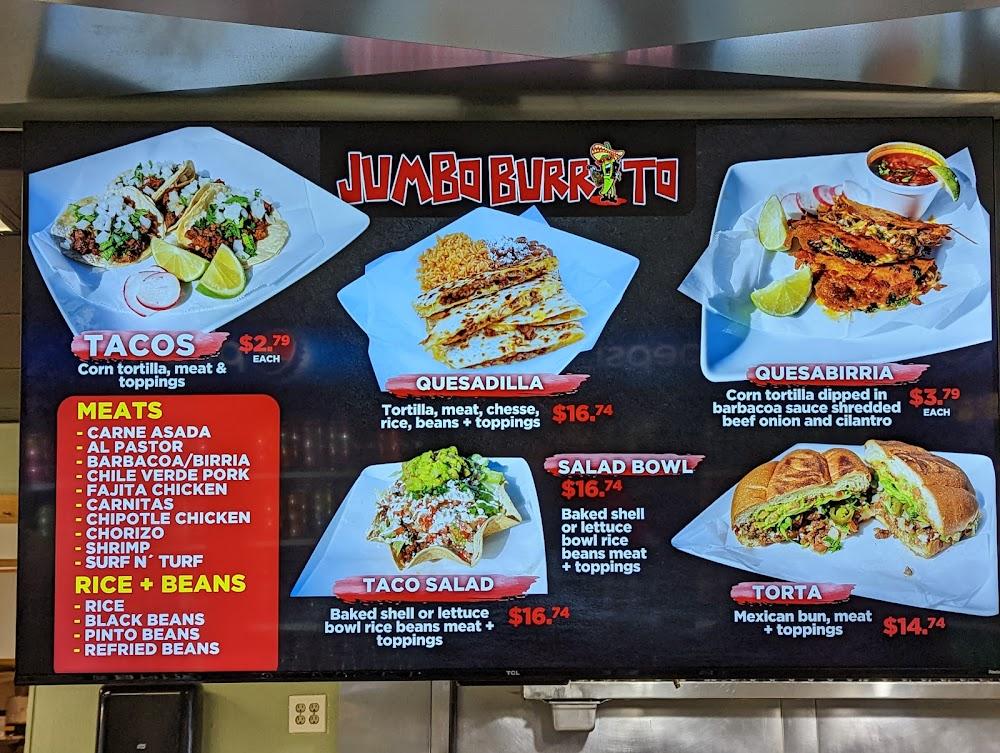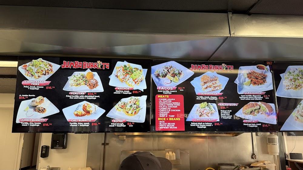 The menu at Jumbo Burrito showcases a mix of traditional Mexican dishes designed to satisfy cravings. The star, the Jumbo Burrito, boasts massive size filled with mouthwatering ingredients. Tacos filled with carne asada and al pastor are favorites too. Diners can enjoy carne asada fries, flautas, nachos, and the delicious Cali burrito, blended perfectly with bold flavors. Portion sizes are generous, ensuring every meal is filling and fulfilling. This simple yet effective menu caters well to both lunch and dinner crowds.